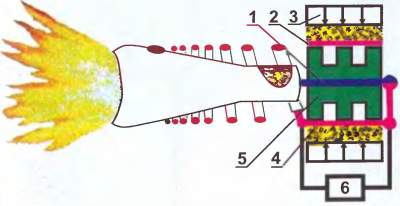 Изготовить новые устройства (цилиндрические ударно-волновые излучатели, ЦУВИ, рис. 4.25) не заняло много времени: цилиндрик монокристалла иодида цезия 1 в них был окружен кольцевым зарядом 2, детонация в котором инициировалась стаканом 3 из эластичного ВВ, через который проходили провода, соединявшие с источником питания пару медных витков 4, а в донной части — располагался детонатор.