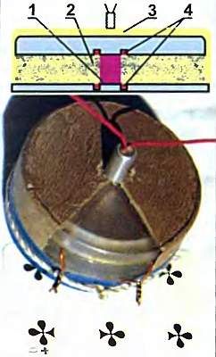 Сжатие магнитного поля в монокристалле исследовалось и теоретически, но задача оказалась весьма сложной и результаты были получены только спустя полдесятка лет, когда оптимум магнитного поля был уже «нащупан» эмпирически: он соответствовал энергии запитывающего излучатель токового импульса около килоджоуля. Запитываемый токовым импульсом оптимальной амплитуды, ЦУВИ выводил из строя большие радиолокаторы, работавшие в сантиметровом и метровом диапазонах длин волн, на радиусах до 50 м от точки подрыва, но сборка вместе с конденсаторной батареей выглядела так (рис. 4.29), что никаких ассоциаций с компактным устройством, которое можно разместить в боеприпасе, не вызывала.