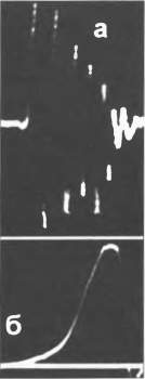 Как и в ядерных боеприпасах, в крупнокалиберных ЭМБП целесообразно размещать несколько небольших излучателей, рассеиваемых перед групповым подрывом — тогда цели поражаются на большей площади. Для кассетных элементов был разработан витковый генератор частоты (ВГЧ, рис. 4.45), обмотка которого состоит из одного, и то неполного витка 1. Короткая труба 2 смещена в сторону пьезоэлементов 3, поэтому сначала она, расширяясь под действием взрыва, «выбивает» из них ток, заряжая конденсатор 4, а уж затем замыкает контур, генерирующий излучение. Как и в случае других генераторов частоты, для ВГЧ была создана полуэмпирическая модель, в значительной степени опирающаяся на результаты токовых измерений (рис. 4.46).