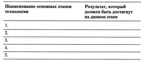 Пожалуйста, кратко опишите изученную вами технологию получения новой работы, заполнив приведенную ниже табл. 7.