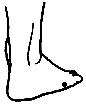 Точка Шу-гу (рис. 13) располагается кзади и кнаружи от головки v плюсневой кости стопы, в углублении на месте перехода тыльной поверхности стопы в подошвенную.