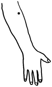В этом случае в качестве дополнительной точки используется точка Шоу-сань-ли (рис. 16), расположенная на тыльной поверхности предплечья на 2 цуня ниже середины расстояния между латеральным надмыщелком и внешним концом складки локтевого сгиба.