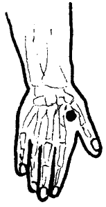 Точка Хэ-гу (рис. 18) располагается в ямке между первой и второй пястными костями кисти, ближе к середине второй пястной кости. Воздействовать на точку следует тонизирующим методом. Воздействие на точку Хэ-гу также помогает при головной боли, головокружении, потливости.