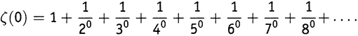 На графике не показано ничего про дзета-функцию слева от линии s = 1. Это потому, что до сих пор мы предполагали, что sбольше единицы. А если меньше? Если, скажем, sравно нулю? Ну, тогда выражение (5.2) примет вид