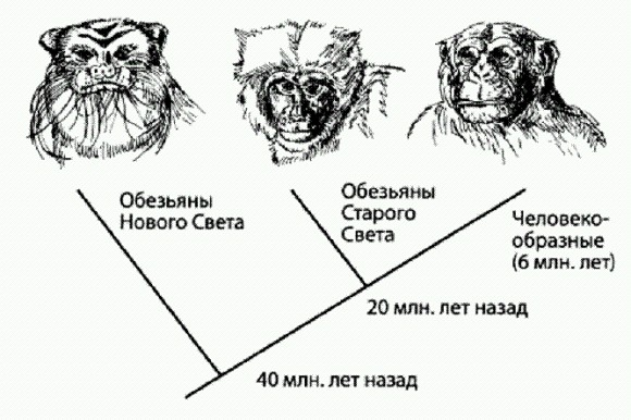 Обезьяны, принявшие участие в эксперименте (слева направо): тамарин (Saguinus), макака (Масаса) и шимпанзе (Pan). По рисунку из Wood et al., 2007.