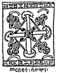 – Бадж пишет, что это эфиопский амулет, который находится в его собственности. Центральный мотив – коптский крест; в этом нет ничего необычного, ведь христианство в Эфиопию принесли египетские монахи, так что коптские и эфиопские кресты до сих пор не различаются. Но он тут пишет еще, что, согласно сабейской надписи внизу, амулет представляет сеть, которой царь Соломон уловлял демонов. Буквы слова, которое написано с правой стороны – соответственно X, L, M и N, причем X имеет фонетическое значение «ш». Так что, если добавить гласные, получим имя Соломона. Правда, этот амулет очень напоминает фарасский крест?