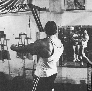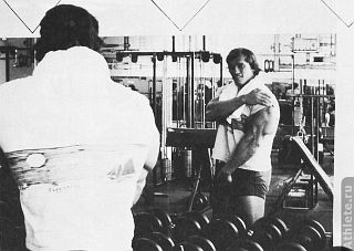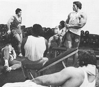 Я часто устраивал мини-соревнования со своими партнерами по тренировке. Позируя рядом, мы могли сравнивать и анализировать достигнутое. Мы видели, что уже сделано, а над чем еще нужно поработать. Если вы еще не слишком опытны, иногда бывает полезно тренироваться с человеком, который знает о позировании гораздо больше вас. В возрасте 18 лет, когда я отправился с визитом к Регу Парку в Южную Африку, мы каждый день ходили вместе в гимнастический зал и делали вид, будто выступаем на сцене. В то время он был гораздо мощнее и опытнее меня; ежедневно работая вместе с ним и позируя после тренировки, я очень много узнал о бодибилдинге. Рег принимал позу и говорил: "Если я демонстрирую эту позу, ты должен сделать то-то и то-то". В фильме "Люди, которые качают железо" вы можете видеть, как я делаю то же самое вместе с Франко и другими культуристами.