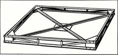 Некоторые любители предпочитают изготавливать подмакетник из алюминиевого уголка. Рама может быть построена по принципу деревянной. Одна ко при больших размерах конструкции, собранной в одной плоскости, трудно избавиться от перекосов в моменты перемещения подмакетника, что приведёт к появлению трещин в рельефе, перекосу рельсовых путей, нарушению электрических соединении и др. Подмакетник из уголка будет соответствовать необходимым требованиям, если его построить в виде объёмной конструкции (рис. 20), в которой будут косые связи боковых сторон, придающие конструкции жёсткость. Сооружая макет металлической конструкции, особое внимание следует обращать на хорошую изоляцию электрических устройств и цепей от коротких замыканий.