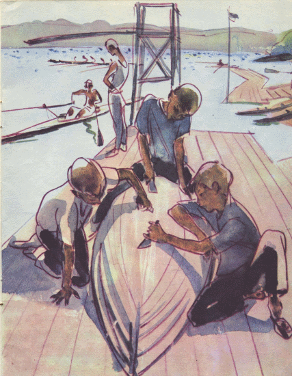 Через несколько минут, вооруженные скребками и жесткими стальными щетками, мальчишки принялись очищать гичку от старой потрескавшейся краски.