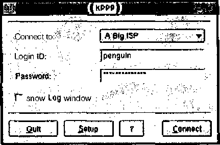 Разные программы установления соединений по коммутируемым линиям различаются между собой лишь в деталях. В данном разделе рассматривается популярная программа KPPP, которая входит в состав K Desktop Environment (KDE). С KPPP можно работать, даже не используя KDE. Кроме KDE для установления соединений по телефонным линиям можно применять программу GNOME PPP (она входит в состав GNU Network Object Model Environment, или GNOME), а также инструменты, не являющиеся частями интегрированных сред, например X-ISP (
