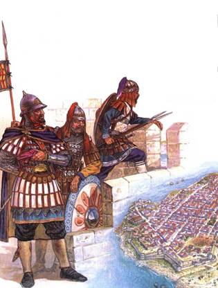 Византийская пехота. Военачальник, тяжелый и легкий пехотинец. (чем не "монголы"?)