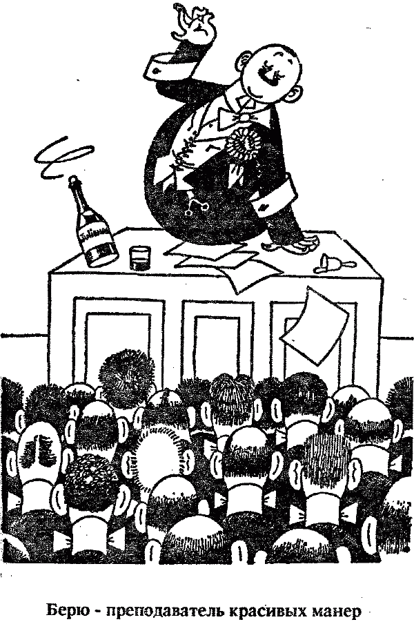 — Кикин, сядьте на свое место и записывайте, — обращается он к наказанному, — иначе я буду переживать, что лишил вас хороших манер, тем более, что при их раздаче вы, по-видимому, занимались подводным плаванием!