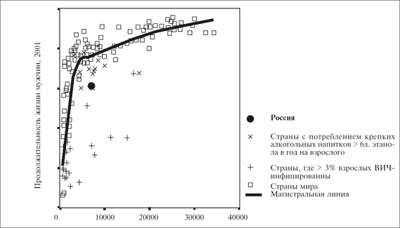 Иллюстрация 4. Диаграмма продолжительности жизни мужчин в мире.