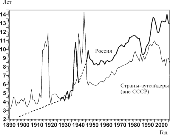 Иллюстрация 5. Диаграмма разрыва в продолжительности жизни между мужчинами и женщинами.