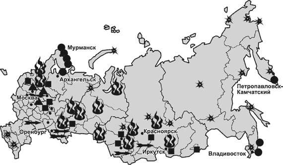 Места базирования ВМФ (Северный и Тихоокеанский флот).