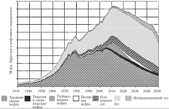 Иллюстрация 11. Прогноз добычи нефти и природного газа на основе данных о запасах на 2006 год.