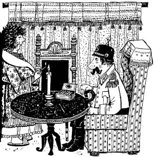 Госпожа Худобок зажгла свечу, стоящую точно в середине стола, поверхность которого была покрыта всевозможными причудливыми знаками: звездами различной величины и формы, квадратами и крестами, цифрами и кругами, а также буквами незнакомого шрифта, прочитать который господин Димпфельмозер не мог.