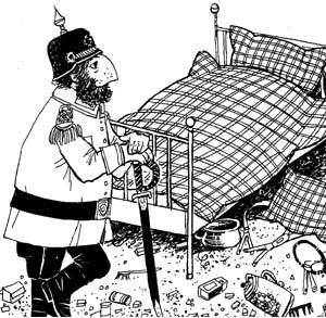 Солнце палило Хотценплотцу прямо в голову, надоедливая муха жужжала вокруг его каски. Чтобы нечаянно не заснуть, он время от времени брал понюшку табаку.