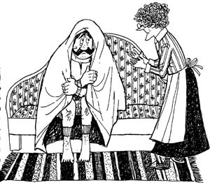 В гостиной ее дома горел свет. Господин старший вахмистр Димпфельмозер сидел на диване. Он завернулся в одеяло и выглядел не особенно счастливым.