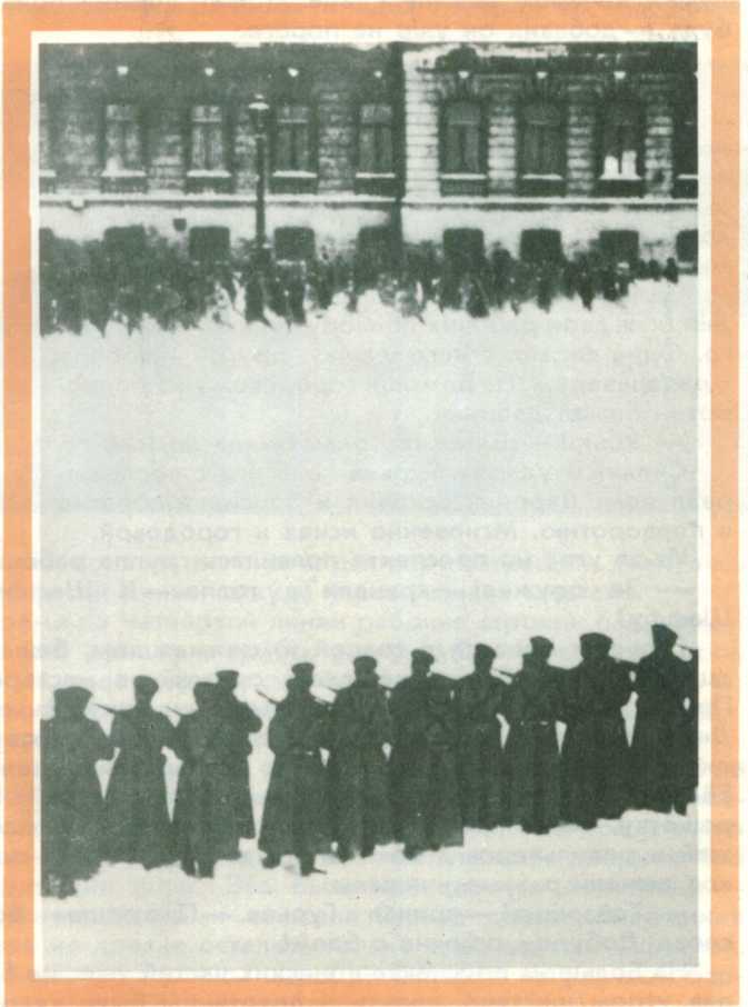На улице прохожих не было. Ещё недавно ясное небо заволокли сизые пухлые тучи. Начиналась пурга. Навстречу Гурьеву тянулись извозчичьи сани с убитыми. На козлах рядом с извозчиком сидел городовой или дворник. Где-то вдалеке слышались выстрелы.
