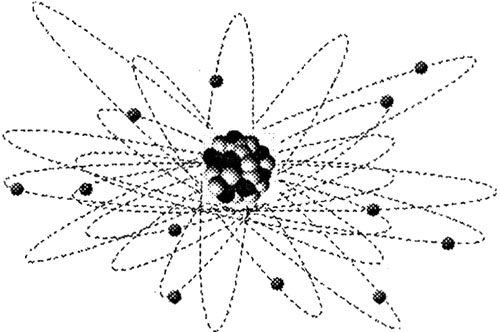 Тот факт, что большинство частиц не отклоняется или отклоняется ненамного, может означать лишь одно: атом состоит главным образом из пустого пространства. Поэтому Резерфорд предположил, что электроны, крошечные частицы, имеющие отрицательный заряд, вращаются на большом расстоянии от ядра в зоне, называемой оболочкой, внутри которой находится основной объем атома. Резерфорд считал, что атом подобен Солнечной системе в миниатюре: в центре находится ядро, а электроны движутся по орбитам на большом расстоянии от ядра.