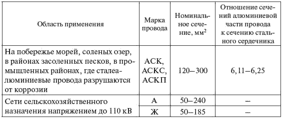 Рекомендуемая область применения проводов различных марок приведена в табл. 3.2.