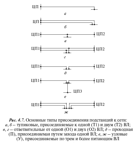 Главная схема электрических соединений ПС выбирается с использованием типовых схем РУ 35-750 кВ, нашедших широкое применение при проектировании. Отступления от типовых схем допускаются при наличии технико-экономических обоснований и согласования с утверждающими инстанциями. В последней редакции количество типовых схем значительно увеличено (с 14 до 20); вместе с тем из этого числа выделено 11 схем, рекомендуемых в первую очередь. Следует однако отметить, что введение ряда новых схем представляется недостаточно мотивированным, так как не учитывает принципы построения сети.