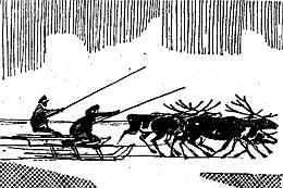 Он прыгнул в нарту, беговые олени понесли. Старик унесся так же внезапно, как появился.