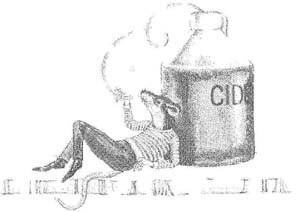 Крыса восседала на верхней полке, выглядывая из-за огромной бутыли. В горлышко бутыли была вставлена резиновая трубочка, из которой Крыса потягивала сидр.