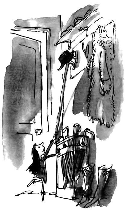 Держа шляпу в одной руке, а тоненький тюбик Суперклея в другой, Матильда очень аккуратно обмазала клеем внутреннюю кромку шляпы. Затем она снова повесила шляпу на вешалку с помощью трости. Она тщательно рассчитала всю операцию по времени, и клей намазывала как раз в тот момент, когда отец поднимался из-за стола, кончив завтракать.