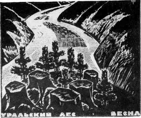 Весна (Из серии «Уральский лес»). Линогравюра.
