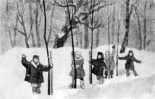 — Смотри, — сказал Миша Ване, — вот моё деревцо. Я с ним каждый день здороваюсь. Я знаю, что оно меня не слышит. Во-первых, зимой деревья спят, а во-вторых, у них нет ушей, но всё-таки они живые. Я никому не дам моё деревцо в обиду, и когда вырасту и поступлю в школу, я всё равно буду приходить сюда каждый день. И когда стану инженером, всё равно буду приезжать сюда. Мы теперь много знаем о деревьях. Наталья Васильевна читала нам о них книжки. А потом к нам приходил садовник — старый-старый и совсем белый, как дед Мороз. И он рассказывал ним, как надо беречь молодые деревья.
