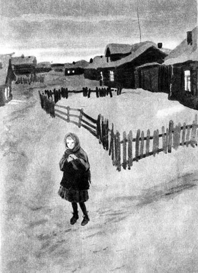 Стою я, жду. Совсем темно стало на улице. Во всех окнах засветились огни. А отца нет и нет. Но вот вижу я наконец — идёт к нашему дому какой-то человек.
