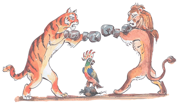 Сто коров,Двести бобров,Четыреста двадцатьУчёных комаровПокажут сорокУдивительныхНомеров.Четыре тысячи петуховИ четыре тысячи индюков Разом ВыскочатИз четырёх сундуков.Две свиньиСпляшут польку.Клоун ПетькаУдарит клоуна Кольку.Клоун КолькаУдарит клоуна Петьку.Учёный попугайСъест мочёную Редьку,Четыре тиграПодерутся с четырьмя львами. Выйдет Иван Кузьмич С пятью головами.