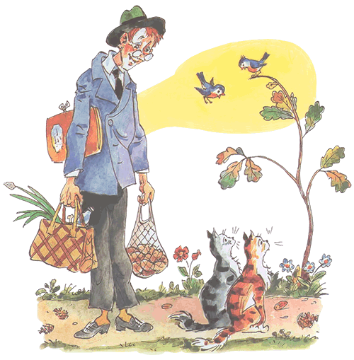 Однажды по дорожкеЯ шёл к себе домой.Смотрю и вижу: кошкиСидят ко мне спиной.Я крикнул: «Эй вы, кошки!Пойдёмте-ка со мной,Пойдёмте по дорожке,Пойдёмте-ка домой.Скорей пойдёмте, кошки,А я вам на обедИз лука и картошкиУстрою винегрет».«Ах, нет! — сказали кошки.—Останемся мы тут!»Уселись на дорожкеИ дальше не идут.1937