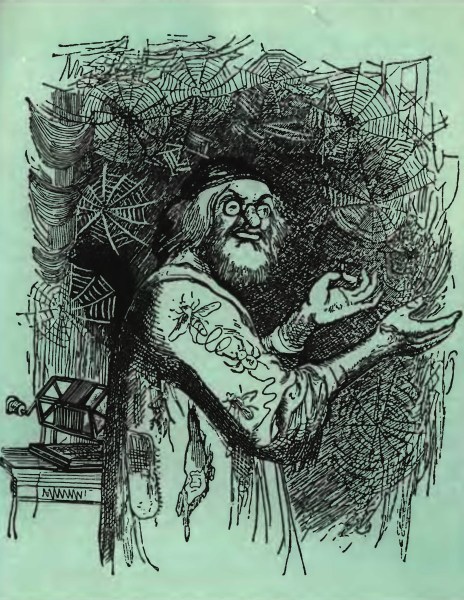Я вошел в следующую комнату, где стены и потолок были сплошь затянуты паутиной [586] , за исключением узкого прохода для изобретателя. Едва я показался в дверях, как последний громко закричал, чтобы я был осторожнее и не порвал его паутины. Он стал жаловаться на роковую ошибку, которую совершал до сих пор мир, пользуясь работой шелковичных червей, тогда как у нас всегда под рукой множество насекомых, бесконечно превосходящих упомянутых червей, ибо они одарены качествами не только прядильщиков, но и ткачей. Далее изобретатель указал, что утилизация пауков совершенно избавит от расходов на окраску тканей, и я вполне убедился в этом, когда он показал нам множество красивых разноцветных мух, которыми кормил пауков и цвет которых, по его уверениям, необходимо должен передаваться изготовленной пауком пряже. И так как у него были мухи всех цветов, то он надеялся удовлетворить вкусам каждого, как только ему удастся найти для мух подходящую пищу в виде камеди, масла и других клейких веществ и придать, таким образом, большую плотность и прочность нитям паутины.