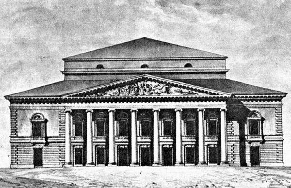 В 1836 году Большой театр реконструировали по проекту архитектора А. К. Кавоса. Из отчета дирекции Императорских театров за этот год следует, что «от прежнего здания остались одни только стены, все остальное сделано вновь». Темп перестроечных работ для того времени оказался довольно высоким – реконструкция театра продолжалась всего семь месяцев.