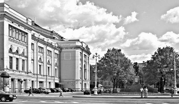30 ноября 1952 года в сквере напротив здания Ленинградской консерватории установили монумент композитору Н. А. Римскому-Корсакову. Среди деятелей отечественной культуры и искусства, музыкантов и литераторов на торжественной церемонии присутствовал внук Николая Александровича, преподаватель Консерватории и композитор Г. М. Римский-Корсаков. Перед собравшимися предстала бронзовая фигура композитора, склонившегося над партитурой, лежащей у него на коленях. С теплыми и проникновенными словами на торжестве выступили композиторы Ю. А. Шапорин и В. П. Соловьев-Седой.