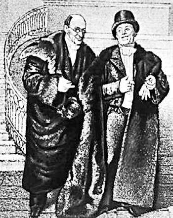 «Горе от ума». Сцена из спектакля. П. А. Каратыгин в роли Загорецкого и И. И. Сосницкий в роли Репетилова. 1831 г.