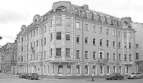 Четырехэтажный дом № 17, построенный на Крюковом канале в 1824 году, относился к разряду рядовых доходных зданий. Строгий фасад был выдержан в формах безордерного классицизма, центр акцентирован полуциркульным окном и балконом. Позже фасад украсили сандриками – небольшими карнизами над проемами окон.
