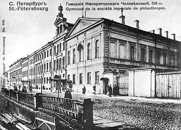 Начиная с первой половины позапрошлого столетия в особняке расположилась знаменитая гимназия Императорского Человеколюбивого общества. Следует пояснить, что эту благотворительную организацию основал российский император Александр I в 1802 году. Общество довольно энергично и эффективно функционировало в Санкт-Петербурге на протяжении всего XIX века, постепенно расширяя сферу своей деятельности на основе правительственных субсидий и частных пожертвований. В его задачи входило оказание медицинской, образовательной и другой помощи бедным, в его ведении находились школы, училища, гимназии, больницы, приюты и богадельни.