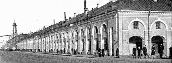 Торговые прилавки и лотки ежедневно расставлялись на Садовой улице, перед набережной Екатерининского канала, вдоль Крюкова канала и даже по берегу Фонтанки. Здесь торговали мясом, луком, зерном, молочными продуктами, яйцами, а кроме продуктов питания – москательными товарами и стройматериалами.