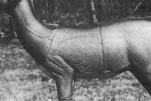 Для того чтобы достичь полной отдачи от этого типа упражнений, вам понадобится двух- или трехмерная модель животного, по образу и размеру совпадающая с животными, на которых вы собираетесь охотиться. От себя могу с уверенностью сказать, что на сегодняшний день для любого охотничье–промыслового животного вы можете легко найти соответствующую трехмерную модель. Эти модели, в зависимости от производителя, выпускаются в широком ценовом ассортименте, так что большинство лучников вполне могут выбрать себе мишень по карману. Плоские, двухмерные мишени доступнее из–за меньшей себестоимости, однако и они вполне успешно выступают в роли силуэта вашей будущей добычи. Если вы не можете себе позволить ни ту, ни другую модель, не впадайте в отчаяние. Вы можете сами создать силуэт животного с помощью большого куска картона, скотча и цветных маркеров, закрепив его на мишени–мешке. Вам решать, сколько денег вкладывать в мишень. Однако замечу: если только вы не участвуете в лучном ЗD -турнире, не обращайте внимания на призовые круги, нанесенные на трехмерную мишень, поскольку зачастую они не отражают действительного расположения жизненно важных органов животного.