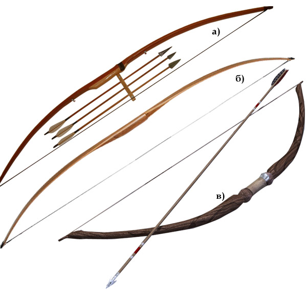 а) Флэтбоу; б) Лонгбоу; в) Сэлфбоу.
