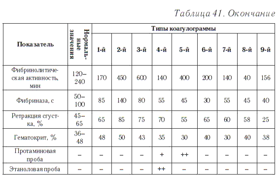 Нормальные показатели анализа на фибриноген и фибрин приведены в таблице 43.