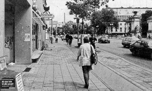 Велосипедные дорожки по краям тротуаров эффективно используют во многих европейских городах (Мюнхен).