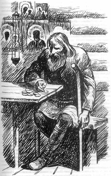 Взглянул: что там, у свечи, юрод ковырял? Вокруг свечи лежали медяки. Но много, горкой.