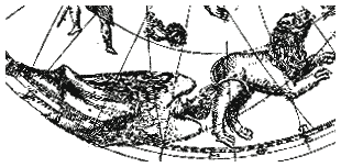 Рис. 23. Созвездие Льва, ведущего за собою Деву, по Grienberger'y.