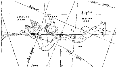 Рис. 51. Созвездие Самка Гидры и Чаша, по манускрипту Grienberger'а, 1612 г.