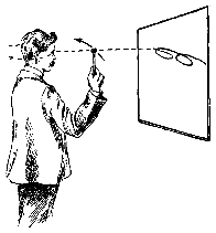 При современном развитии астрономических знаний объяснение этого движения планет скачками по видимому небу не может представлять затруднений даже и для ребёнка. Держите, например, перед собой шарик, как показано на рис. 7, и медленно обводите его вокруг вашей головы, на высоте глаза, справа налево, а головой производите круговые движения в ту же сторону, закрыв предварительно один глаз. Тогда второй, открытый, глаз будет изображать собою Землю, движущуюся по своей орбите, а шарик – планету, движущуюся по другой орбите, более далёкой от Солнца, чем земная.